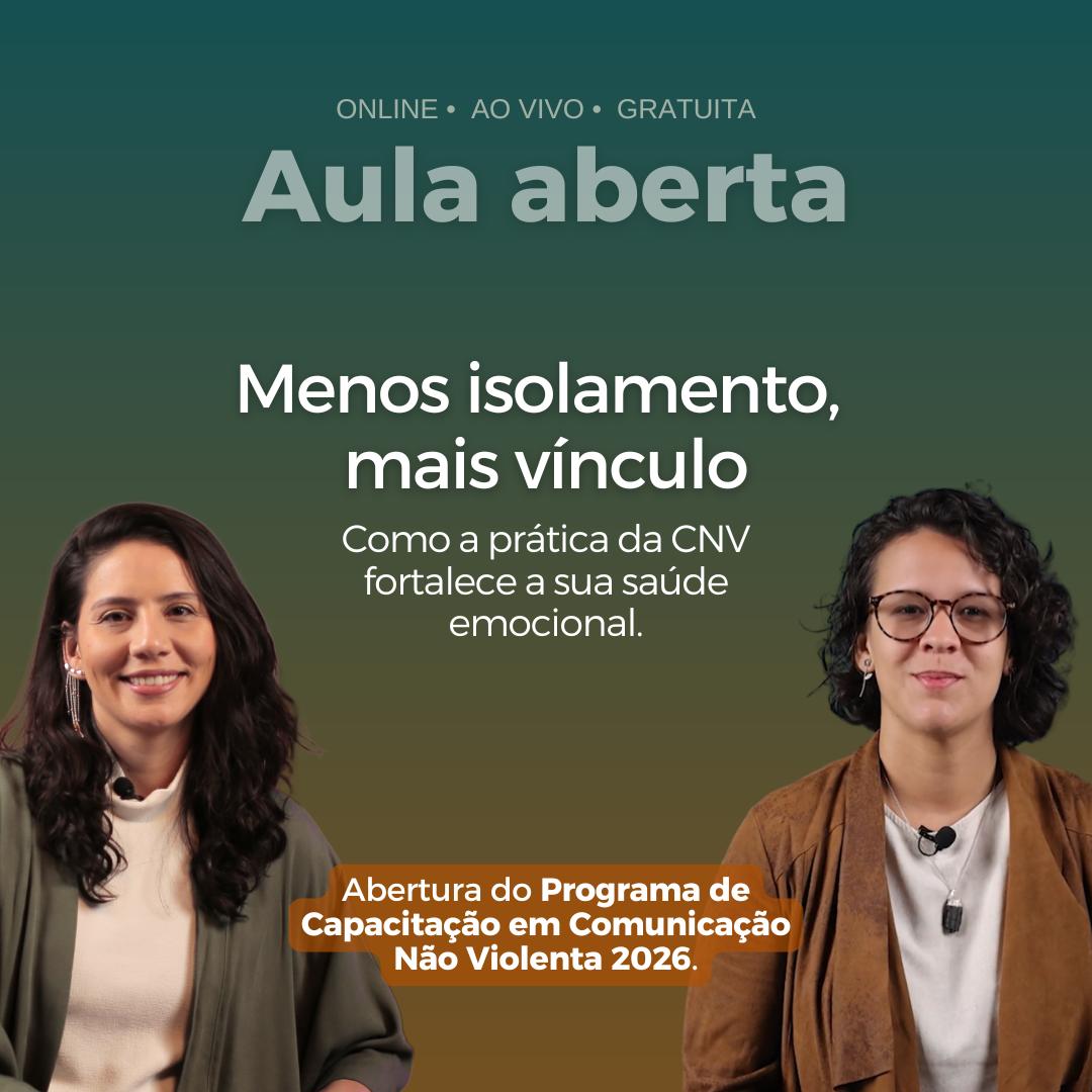 Na aula, abriremos oficialmente as inscrições para o Programa CNV 2026, nossa capacitação imersiva na CNV, para quem quer incorporar a prática na vida e aplicá-la com segurança na atuação profissional.